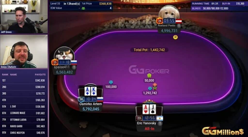 This week’s GGMillion$ showdown was a thriller and played out on GGPoker’s YouTube channel to poker fans around the world as regular host Jeff Gross was joined in the virtual commentary booth by the Ukrainian Denys Chufarin, who is part of the GGPoker team, known as ‘SantaZzz’ to poker fans around the world. The content creator, who has over 26,000 subscribers on YouTube, helped bring the action to life with flair and top-class analysis as the action played down to a winner.